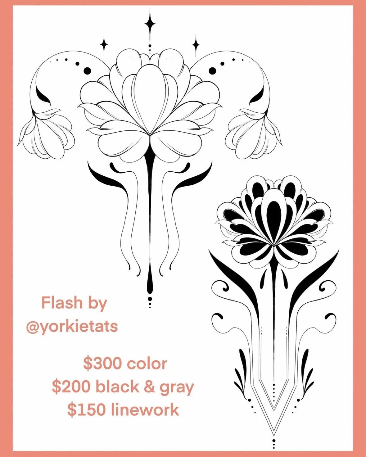 Tattoo flash and pricing will be posted on July 4th at noon, so stay tuned!